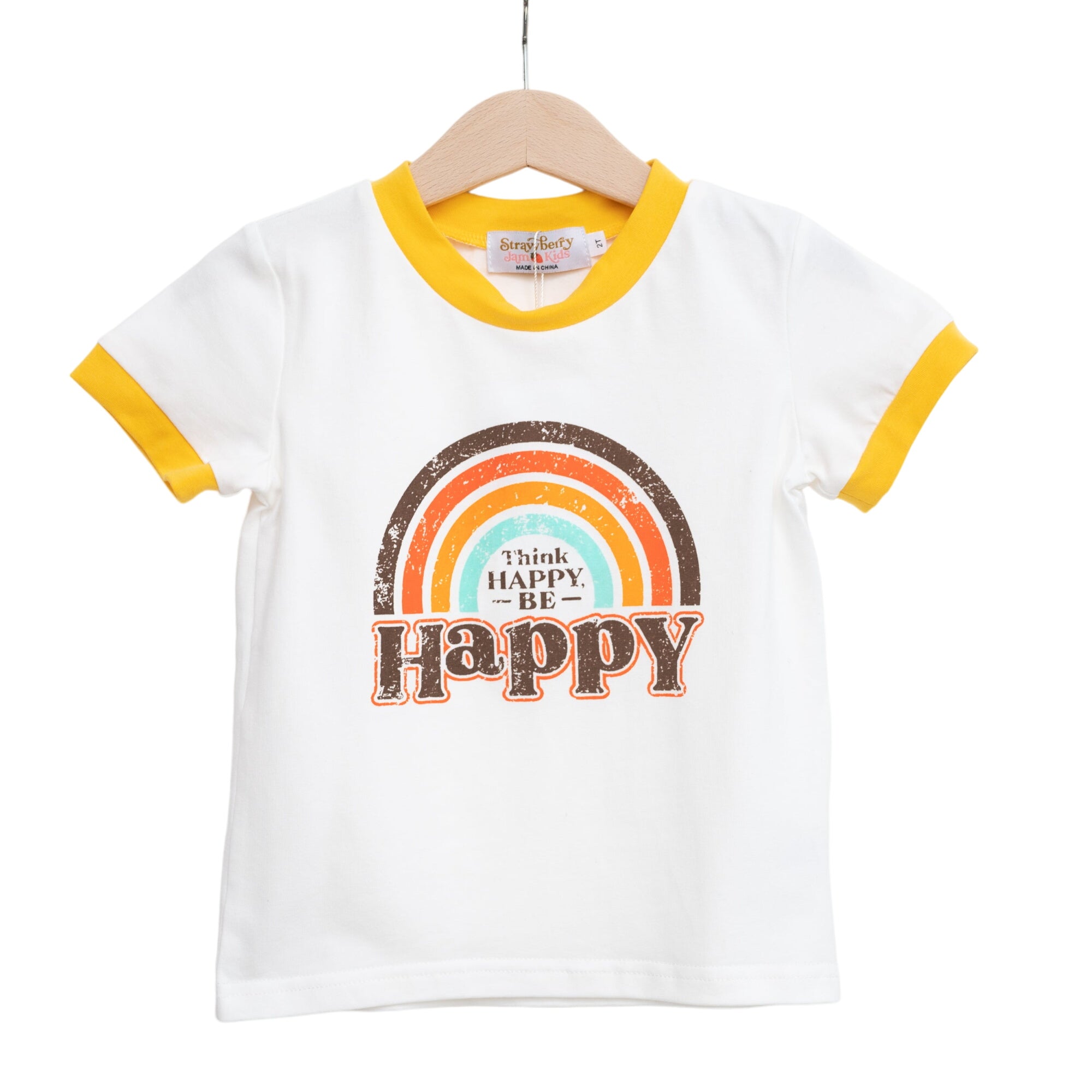 Think Happy Be Happy Retro Ringer T-shirt For Baby And Little Kids