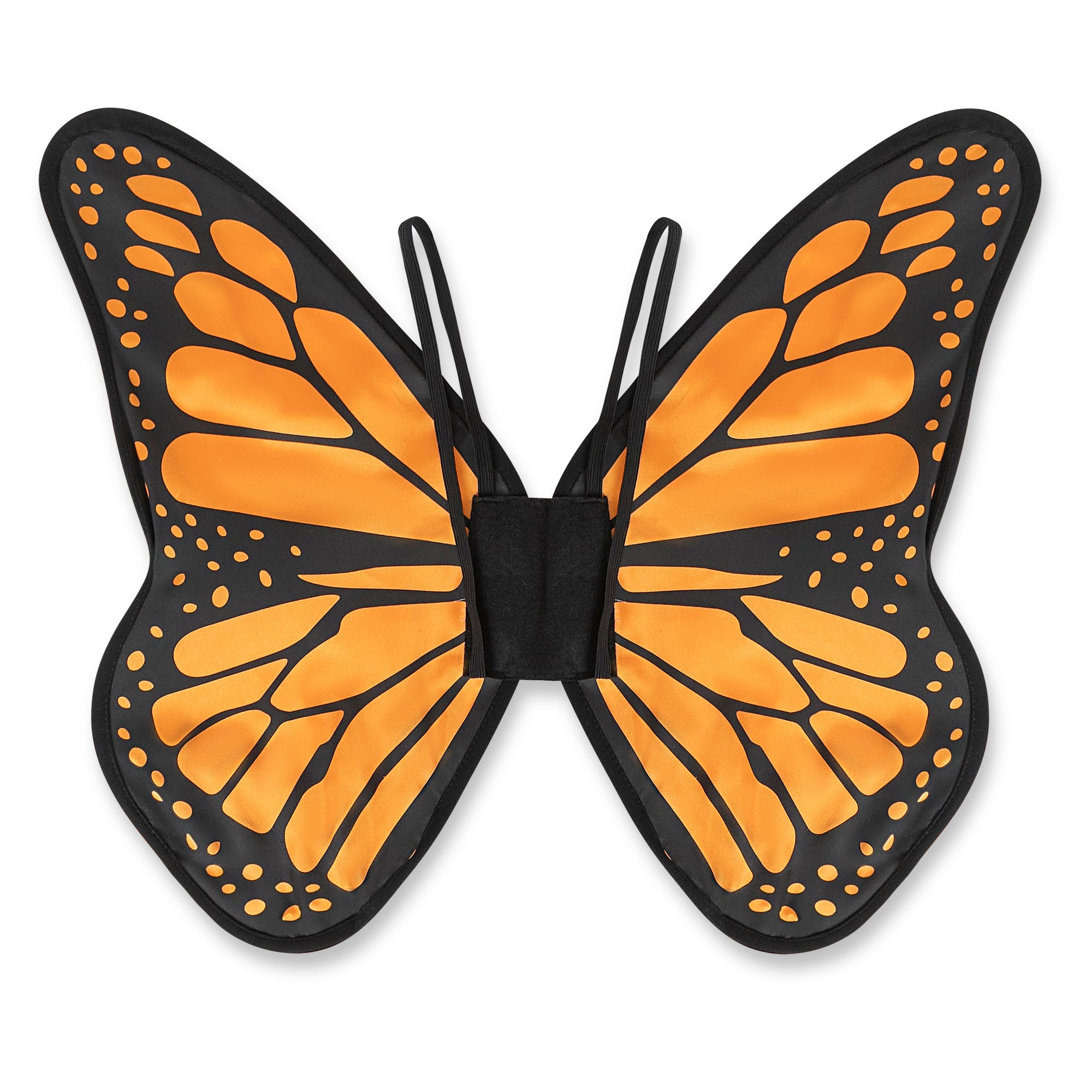 • Colorful butterfly cape with shoulder straps and finger loops for flying look