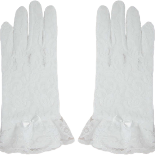 • Kids sized Wrist length gloves made of white lace